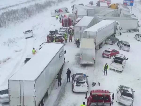 امریکا کی ریاست مشی گن میں شدید برفانی طوفان نے تباہی مچا دی، جہاں ایک ہی شاہراہ پر 100 سے زائد گاڑیاں، جن میں کم از کم 30 بھاری ٹرک شامل تھے، خوفناک چین ری ایکشن حادثے کا شکار ہو گئیں۔