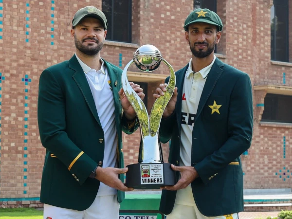 تفصیلات کے مطابق قومی ٹیسٹ ٹیم کے کپتان شان مسعود اور جنوبی افریقی ٹیسٹ ٹیم کے کپتان ایڈن مارکرام نےنیشنل کرکٹ اکیڈمی لاہور میں ٹرافی کی رونمائی کی۔