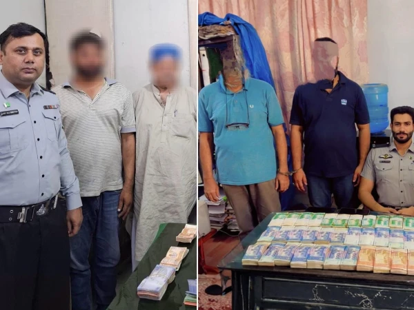 گرفتار ملزم شکیل اور مصطفی کے قبضے سے مجموعی طور پر 60 لاکھ روپے برآمد کئے گئےجبکہ ملزم امداد علی اور کاشف غوری کے قبضے سے 15000 سعودی ریال، 4970 یو اے ای درہم، 22 ملین ایرانی ریال برآمد ہوئے، ملزمان کے قبضے سے 400 امریکی ڈالر، 96 عمانی ریال، 160 تھائی بھات، 1 لاکھ ازبک سوم، 49500 عراقی دینار، 15 چائینیز یوآن، 93 ملائیشین رنگٹ اور 8 لاکھ روپے بھی برآمد ہوئے۔